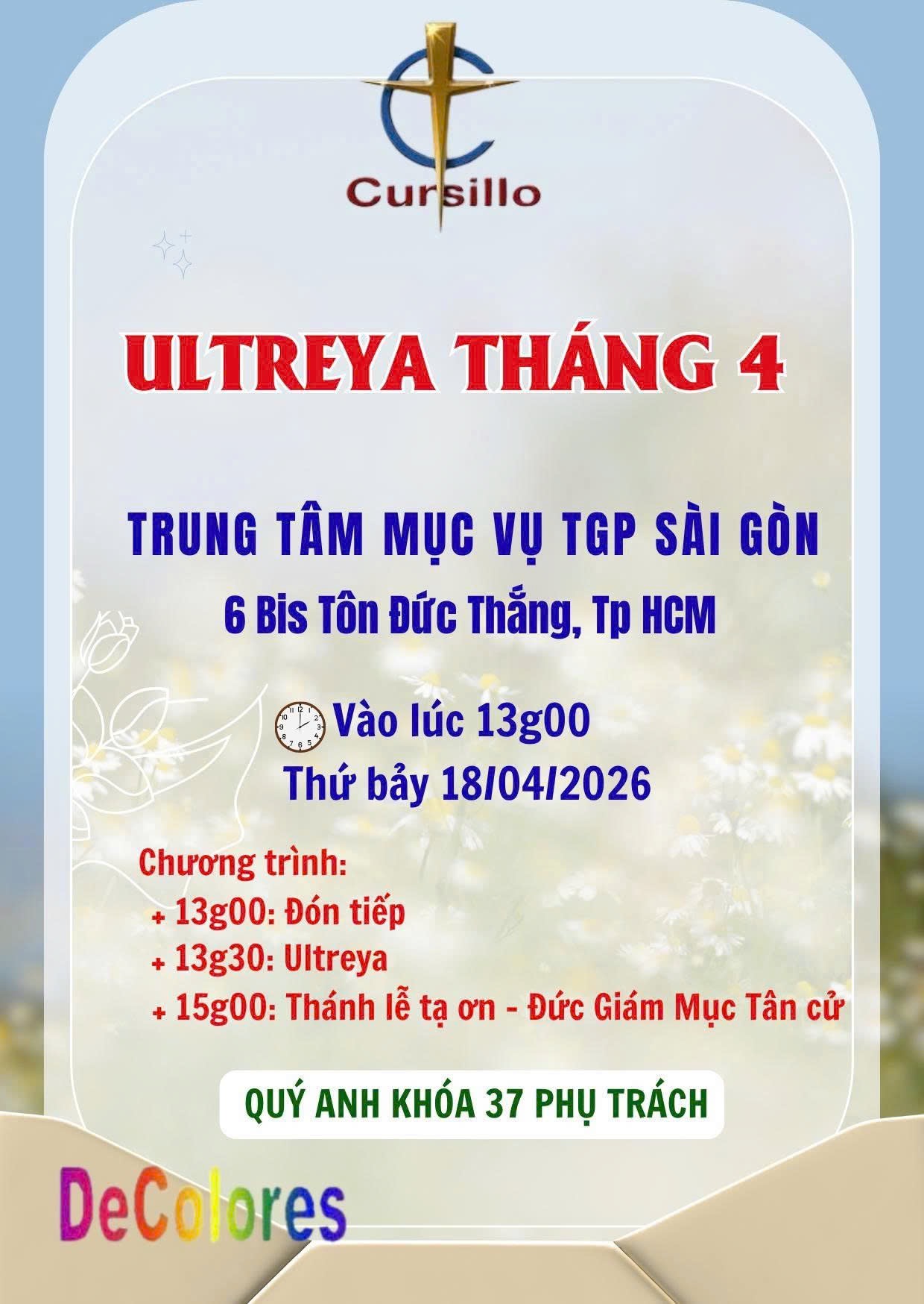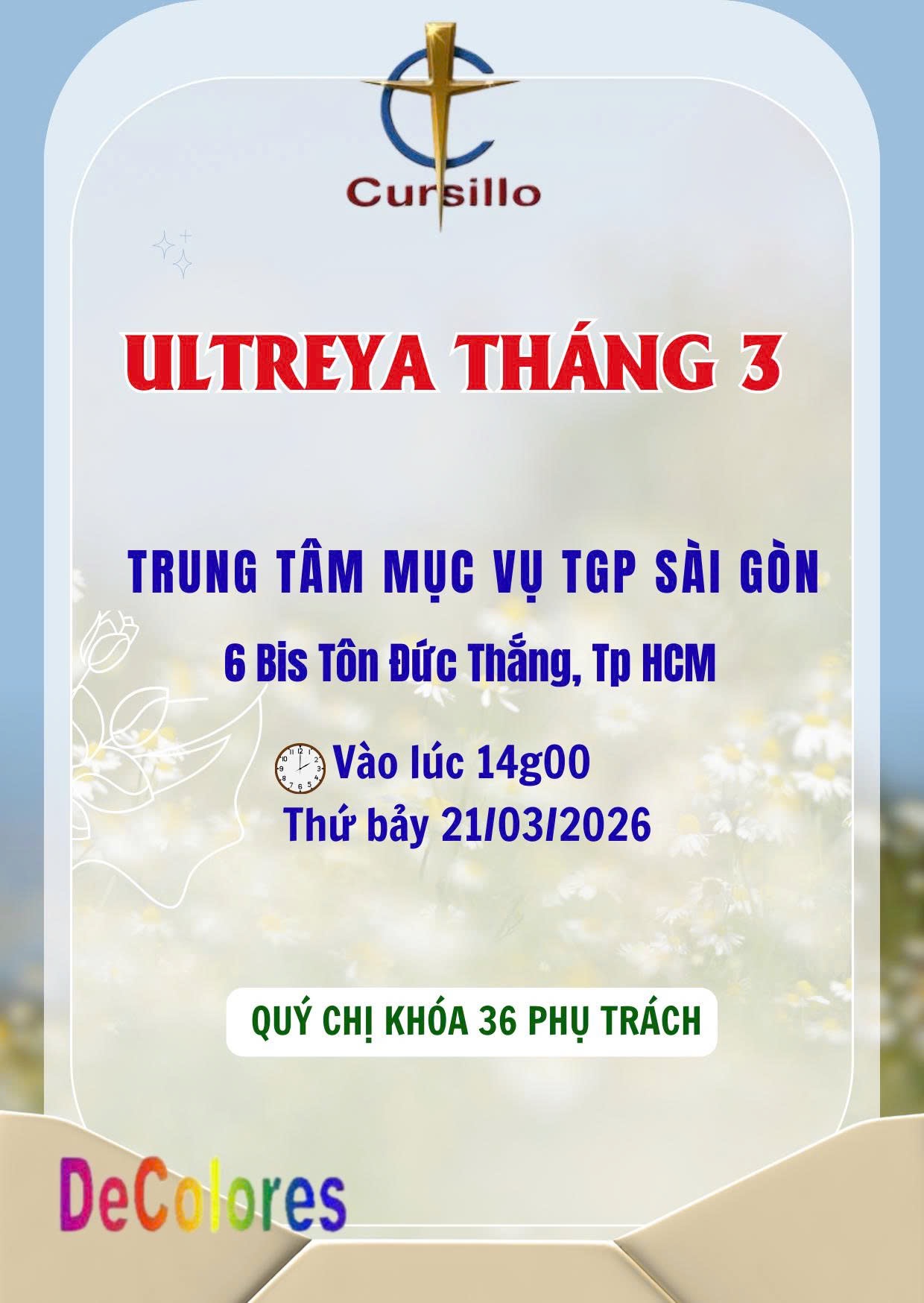 Ultreya Tháng 03 tại TTMV Sài Gòn Ngày 21/03/2026