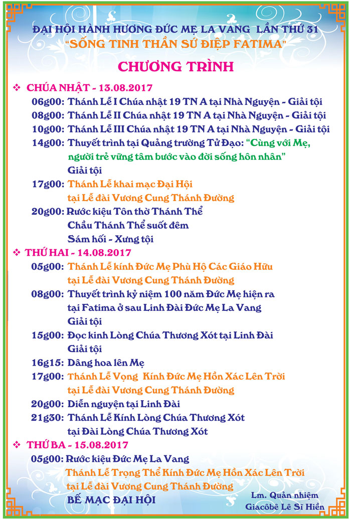 Chương trình Đại hội Thánh Mẫu La Vang lần thứ 31