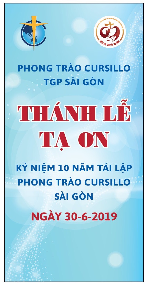 Thánh lễ Tạ ơn Kỷ niệm 10 năm Tái lập Phong trào Cursillo Sài Gòn do cha TĐD Inhaxio Hồ Văn Xuân chủ tế lúc 9g45 Chúa nhật 30-06-2019 tại Nhà nguyện cổ TCV thuộc TTMV Số 6 bis Tôn Đức Thắng, Quận 1