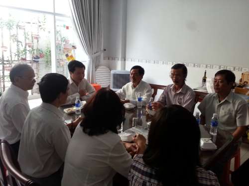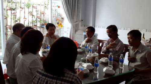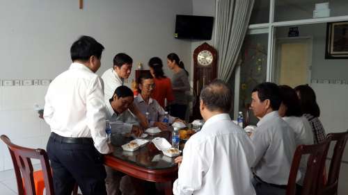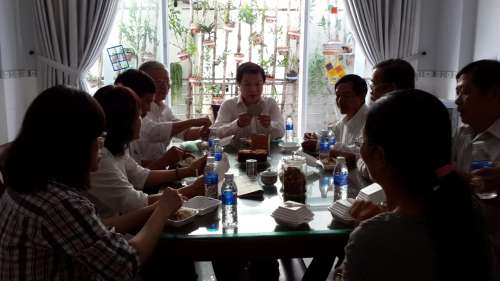 Tất cả cùng ăn, nói chuyện rôm rả với nhau thật là vui, sẵn dịp Cha giới thiệu luôn chương trình “Nhân- Trí- Dũng” mà Giáo xứ An Nhơn vừa tổ chức xong 1 khóa, và đang chuẩn bị thêm khóa nữa vào tháng Bảy, dù bận rộn công việc và chương trình giáo xứ như thế nhưng Cha vẫn quan tâm và hỏi thăm về Phong Trào, cùng chia sẻ với nhau về khóa 3 ngày của Phong Trào Sài Gòn sắp tới, mới thấy tâm tình Cha dành cho chúng ta nhiều biết bao! Cha đúng là người bận rộn, nói chuyện c