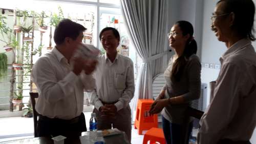 Sáng Chúa Nhật 28/6/2015, một số Anh Chị Em trong Phong Trào Cursillo Sài Gòn đã đến Giáo xứ An Nhơn, để chúc mừng Cha linh hướng Phaolo Nguyễn Quốc Hưng, nhân kỷ niệm 12 năm thụ phong Linh mục. Cùng hẹn nhau 8h00 sáng, nhưng có một số Anh Chị đến sớm để tham dự lễ Thiếu Nhi ở Nhà thờ An Nhơn lúc 7h00. Thánh đường dường như không còn chổ trống, giáo dân tham dự thánh lễ phải tràn ra cả sân và đường. Sau lễ, mọi người cùng nhau lên gặp và chúc mừng, Cha vui vẻ đón tiếp phái đoàn Phong Trào, rất hiếu khách, Cha mời qua nhà ăn, cũng là để dùng bữa sáng luôn (vì Cha biết mọi người đến sớm nên chưa kịp ăn sáng).