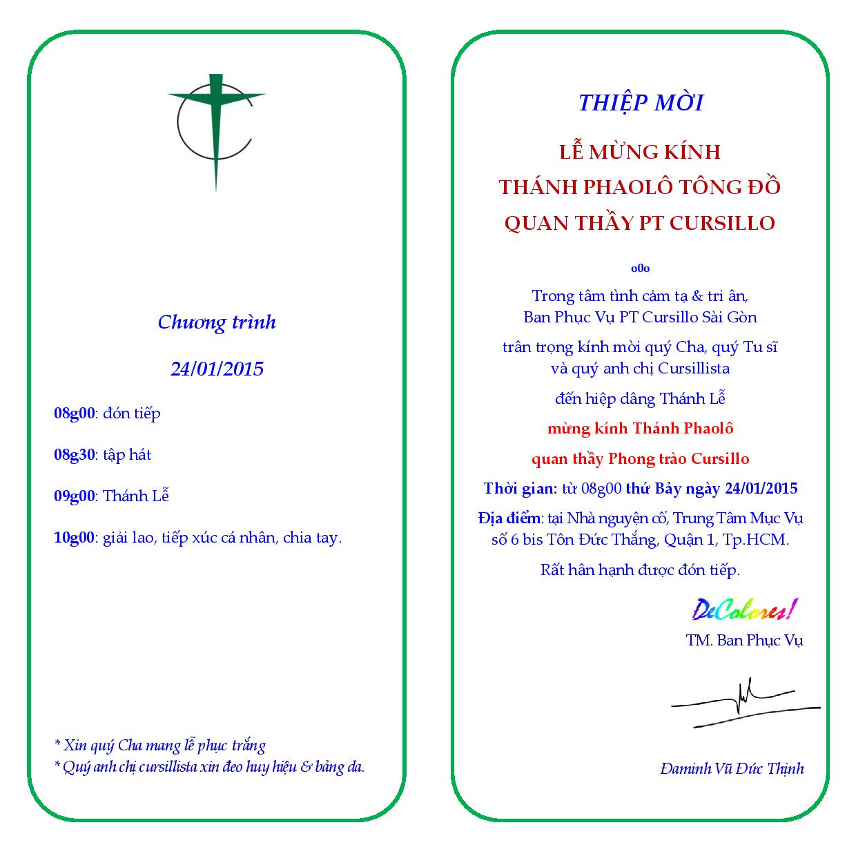 THIỆP MỜI tham dự lễ kính thánh Phaolô quan thầy PT Cursillo.