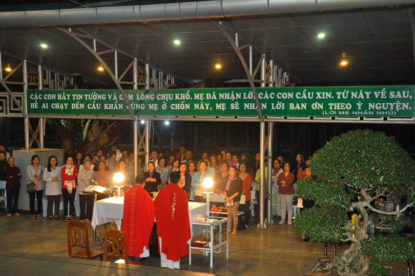 Sau thánh lễ là giờ lần hạt thật tâm tình trước Linh đài Mẹ
