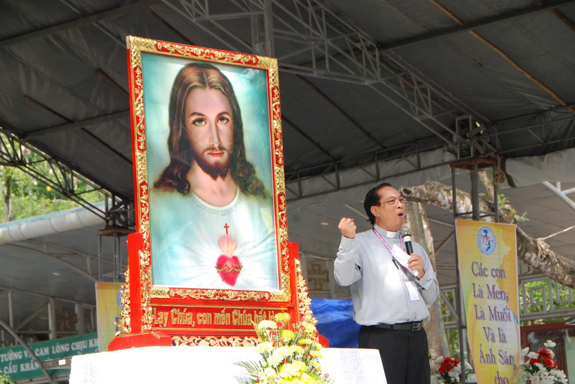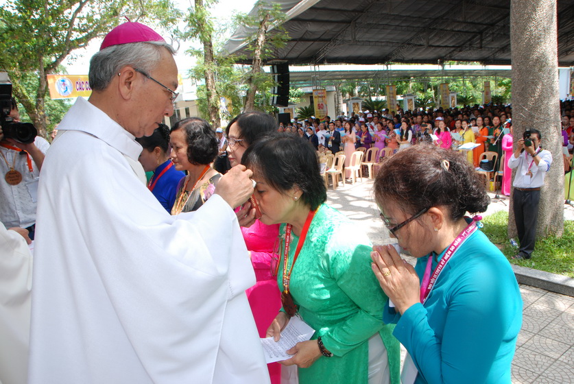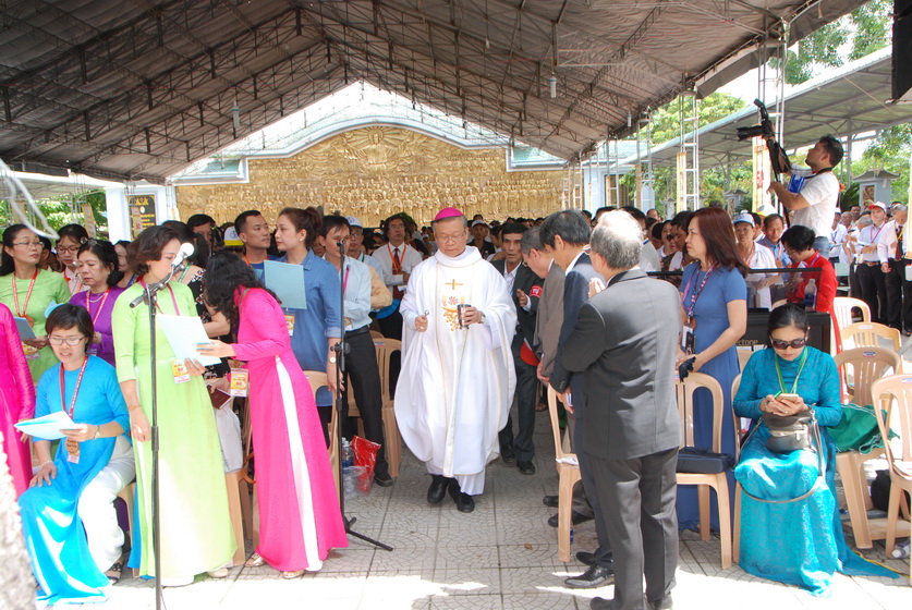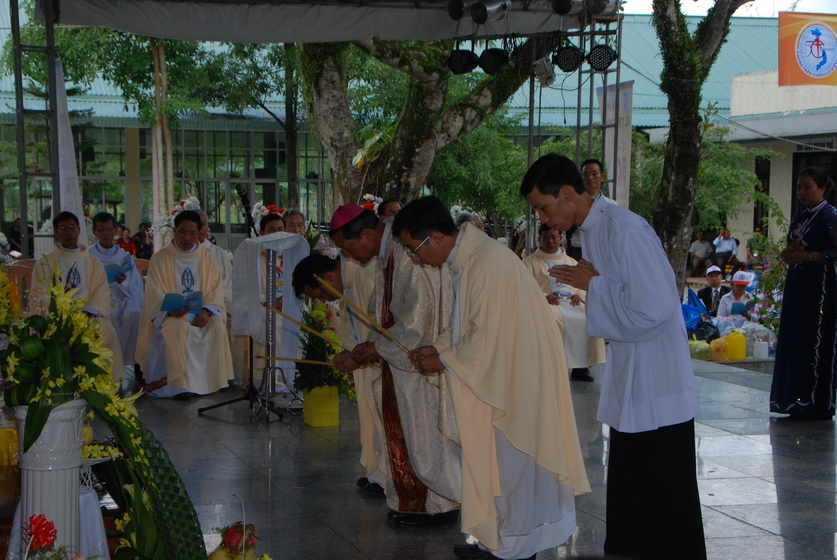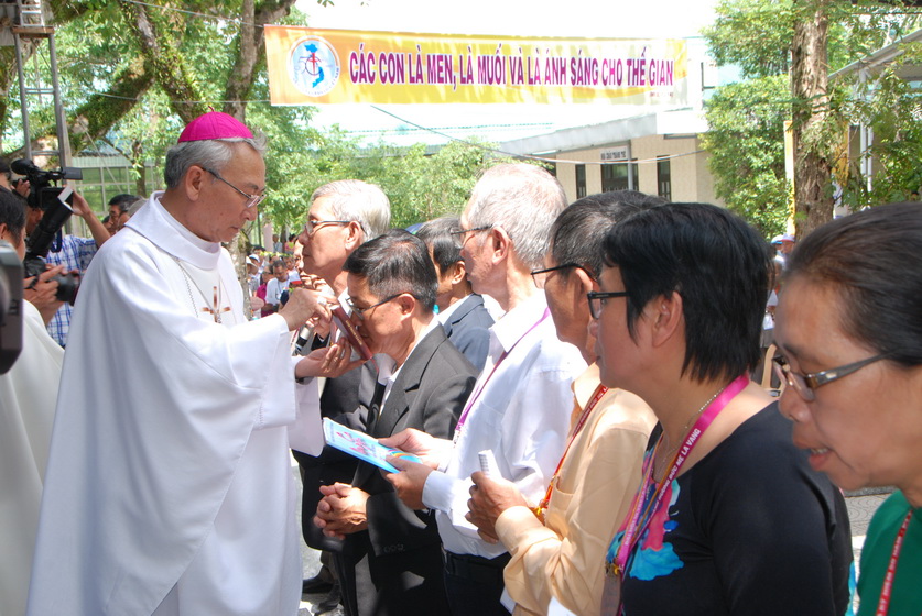 Sau nghi thức Lên đường, ĐC Stephano làm phép nước và các ảnh tượng. Ngài rảo khắp khu vực tổ chức Đại hội để rảy nước phép trên các tham dự viên.