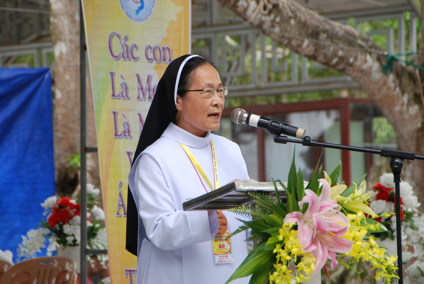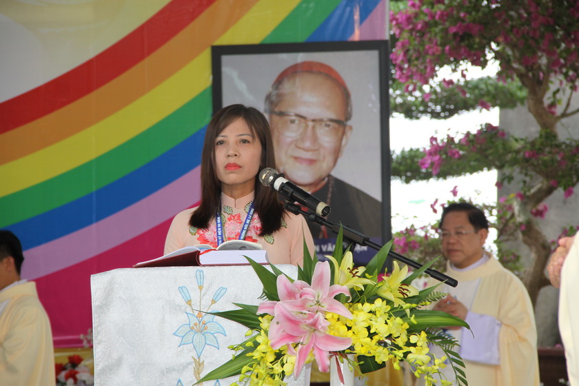 Xơ Sâm - GP Xuân Lộc - đại diện quý Tu sĩ Linh hướng phát biểu. Xơ Sâm là một trong những Cursillista kỳ cựu của Cursillo Việt Nam (đã tham dự Khóa Cursillo năm 1968 tại Manila, Philippines) nhớ lại những ngày gặp gỡ người anh cả PT Cursillo VN, Đấng Đáng Kính, Cố HY Phanxico X. Nguyễn Văn Thuận.