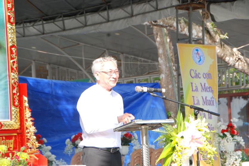 Tiếp đến cha Gioa Kim Nguyễn Văn Hinh - LH GP Long Xuyên - đại diện quý cha Linh hướng phát biểu.