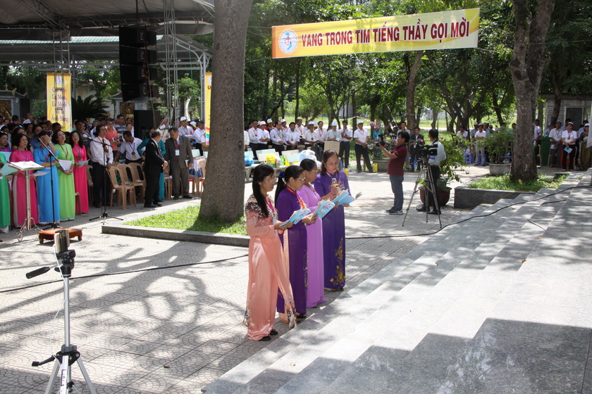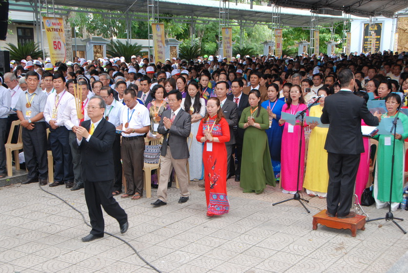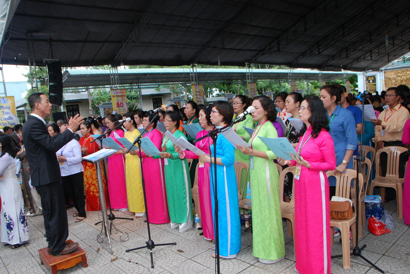 Để khởi động và tạo bầu khí cho ngày Đại hội hôm nay, anh Lê Minh - GP Sài Gòn - Trưởng Ban PV-VN của Đại hội bắt nhịp cùng cộng đoàn ca vang những bài ca phong trào trong sách Ca nguyện.