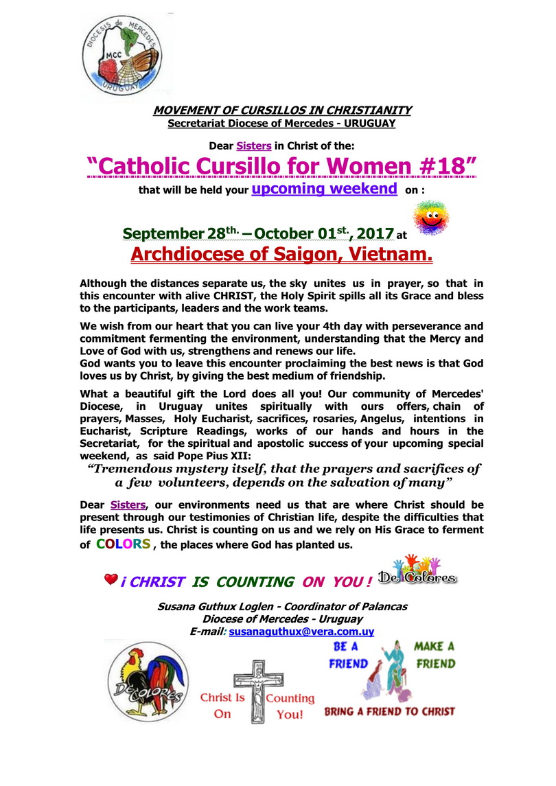 Khóa #18 (Nữ): từ ngày 28 - 30 tháng 9 & 1 tháng 10 năm 2017 tại Nữ Đan Viện Biển Đức, Q. Thủ Đức, Tp.HCM.