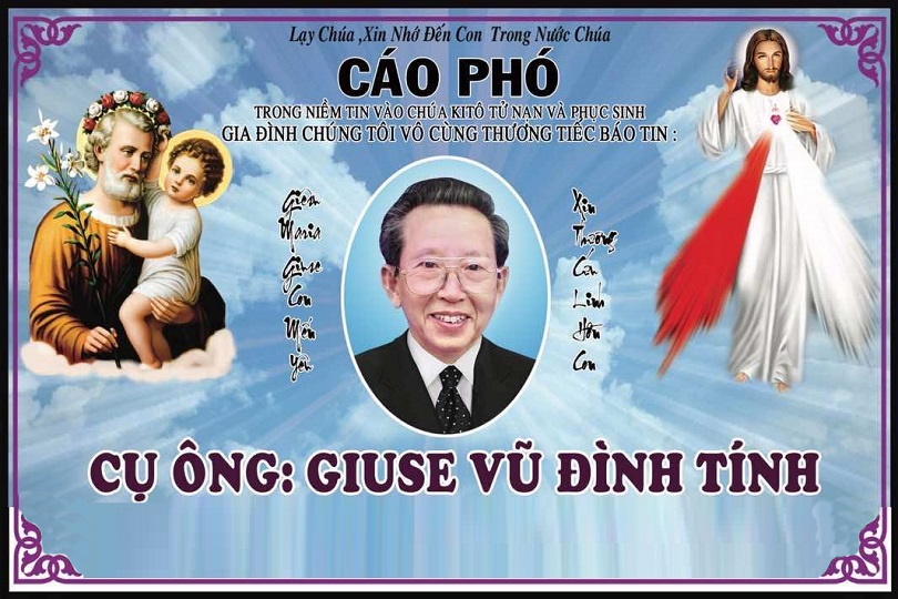 Kính xin qúy cha LH, quý tu sĩ nam nữ cùng toàn thể ACE Cursillista hiệp lời cầu nguyện cho linh hồn Giu-se được sớm về hưởng hạnh phúc vĩnh cửu với Cha là Thiên Chúa toàn năng trên Thiên đàng.