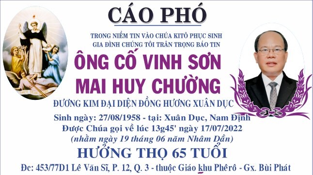 Thánh lễ An táng lúc 8g00 thứ Năm 21/07/2022, tại nhà thờ Bùi Phát, hạt Tân Định