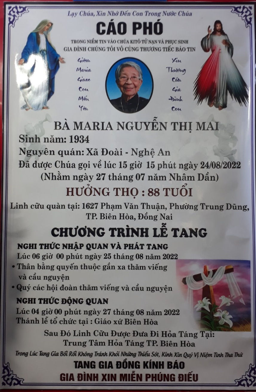 đã về nhà Cha lúc 15g15 ngày 24/8/2022