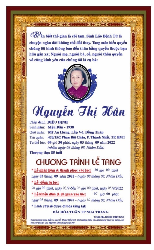 đã từ trần lúc 9g30 ngày 03/09/2022