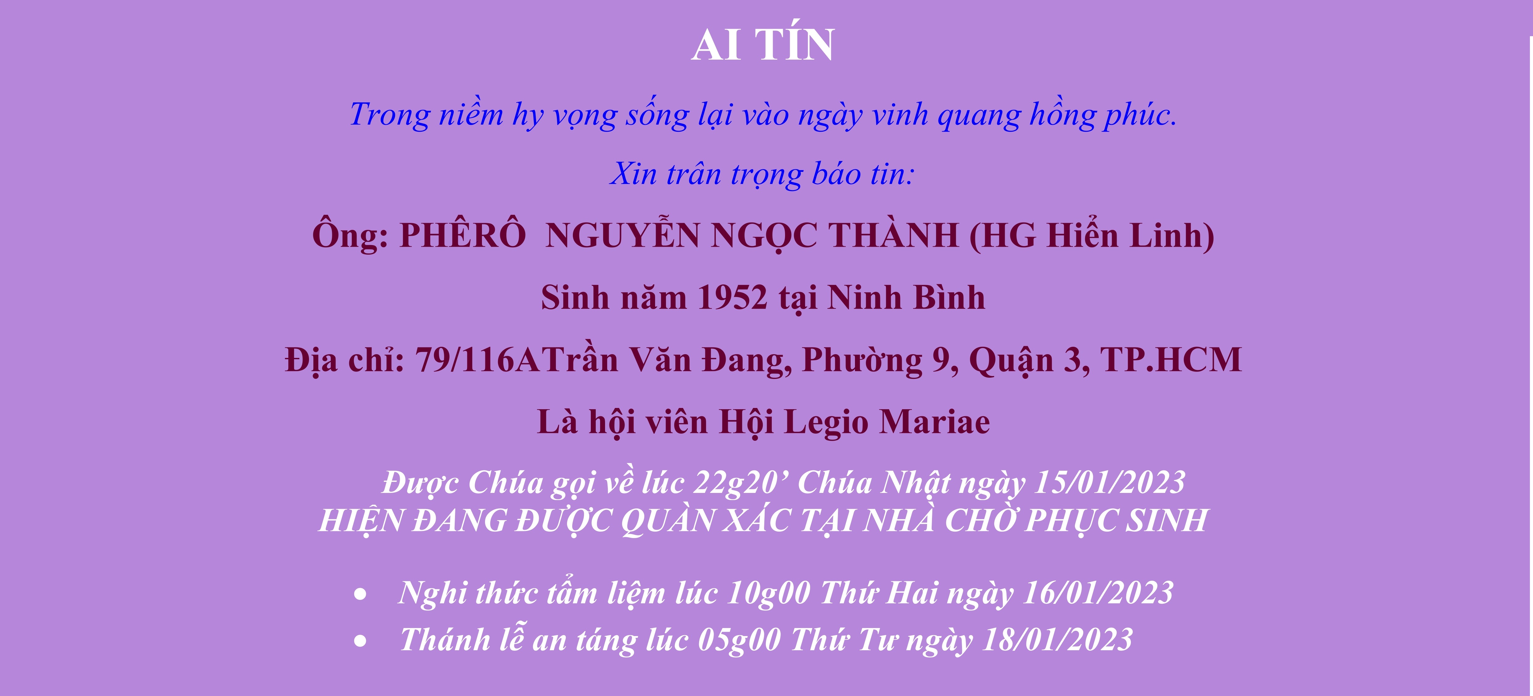 đã kết thúc cuộc hành trình Ngày thứ Tư để về nhà Cha vào lúc 22g20 ngày 15/01/2023,