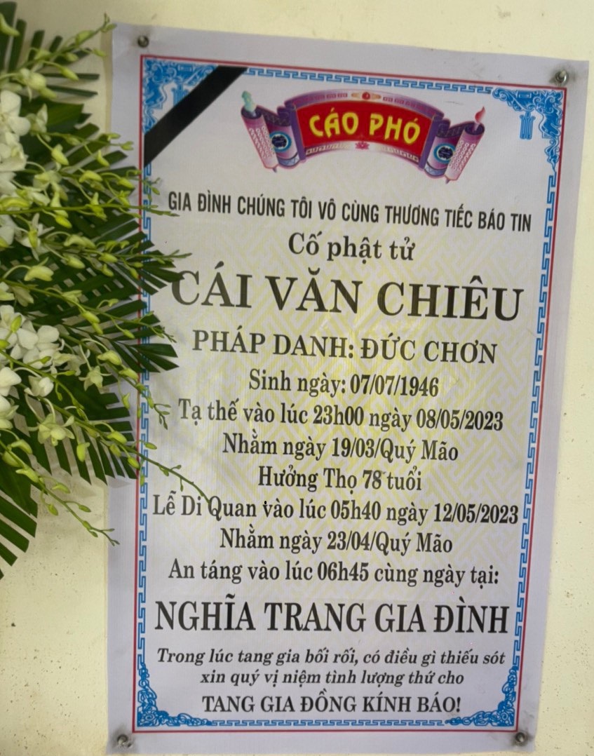 đã tạ thế lúc 23g00 ngày 08/05/2023