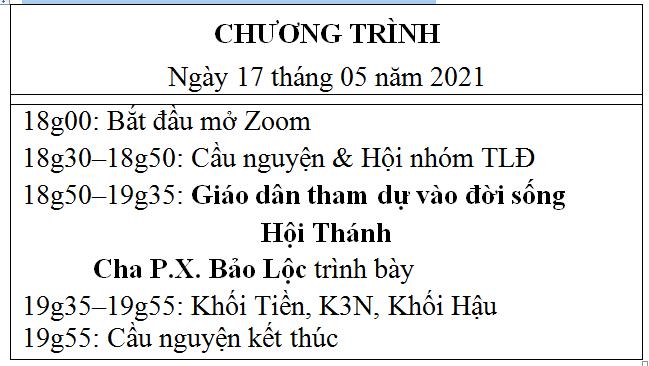 Kính mời quý Cha và ACE tham dự TLĐ qua ZOOM. Để sinh nhiều ơn ích từ nổ lực của mỗi chúng ta, xin ACE cố gắng ăn uống trước và chuẩn bị sổ để ghi chép như tinh thần của 1 buổi sinh hoạt bình thường tại TLĐ. Ước mong được gặp thật đông đủ ACE.