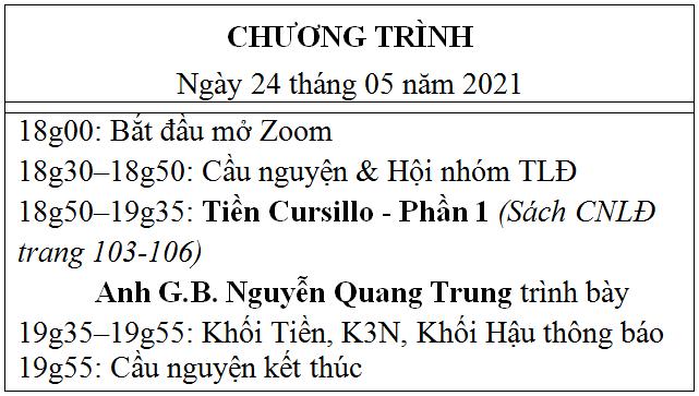 Kính mời quý Cha và ACE tham dự TLĐ qua ZOOM. Để sinh nhiều ơn ích từ nổ lực của mỗi chúng ta, xin ACE cố gắng ăn uống trước và chuẩn bị sổ để ghi chép như tinh thần của 1 buổi sinh hoạt bình thường tại TLĐ. Ước mong được gặp thật đông đủ ACE.