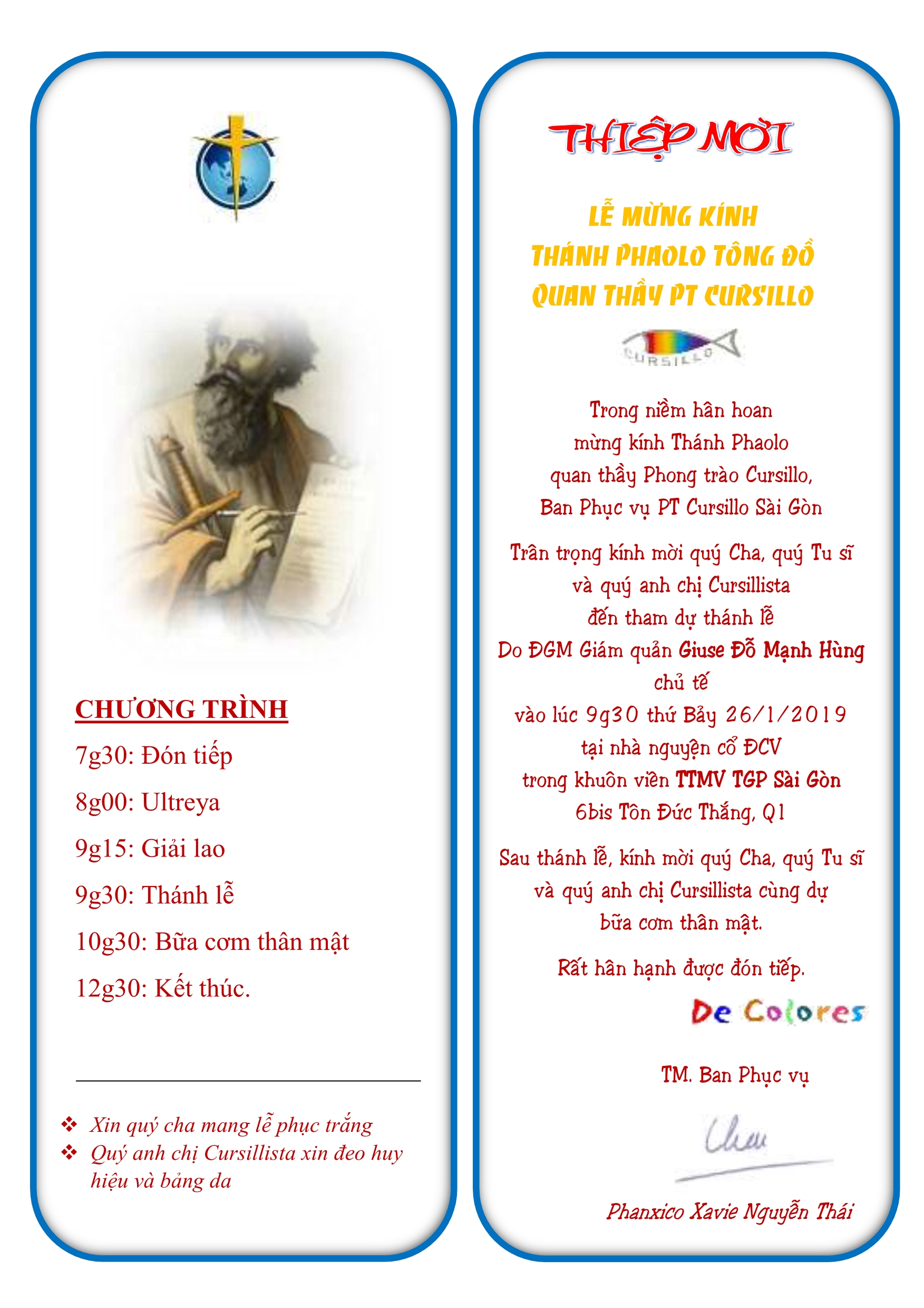 Thư mời dự Lễ Thánh Phao-lô bổn mạng