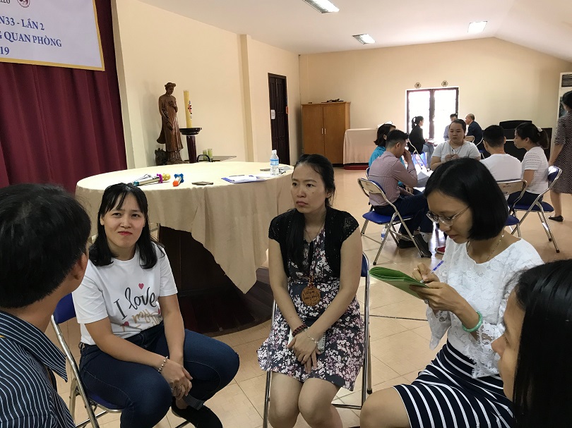 Phần sinh hoạt nhóm lại mang đến một sự đa dạng về những kinh nghiệm thành công trong sự quan phòng của Chúa. Mình muốn khám phá sâu hơn thế nào là “quan phòng” bởi từ này rõ ràng không phổ biến trong Tiếng Việt, và làm thế nào để nhận ra sự “quan phòng” của Thiên Chúa bởi Chúa biết từng sợi tóc trên đầu mình, Chúa biết trước cả điều mình xin, hay như rằng Chúa chăm lo cho từng bông hoa huệ ngoài đồng và từng chú chim bay trên bầu trời cao thẳm. C T.L chia sẻ rằng Chúa quan phòng với chị tức là Chúa đã sắp xếp đã an bài cho chúng ta những điều tốt nhất mà chính ta ngay tại thời điểm đó không nhận ra được, thậm chí còn nghĩ Chúa đã bỏ rơi mình. Như câu chuyện dấu chân trên cát vậy, thật ra Chúa đang cõng mình trên vai, đưa mình đi qua biển khổ. Như việc con xin dao thì cha mẹ không thể đưa cái dao sắc cho con, hay con xin rắn thì không thể nào cha mẹ lại cho con mình vậy. Việc mình muốn, việc mình xin, việc mình nghĩ là tốt, là thành công không hẳn là điều tốt nhất, mà mãi nhiều năm sau mình mới có thể nhận ra được Chúa đã giúp mình một điều tốt hơn. Chị cũng rất tâm đắc nói rằng vì thấu hiểu và tín thác như vậy nên làm việc gì chị cũng dâng lên cho Chúa và làm hết mình, dù kết quả thế nào chị cũng chấp nhận và cảm tạ ơn Chúa.