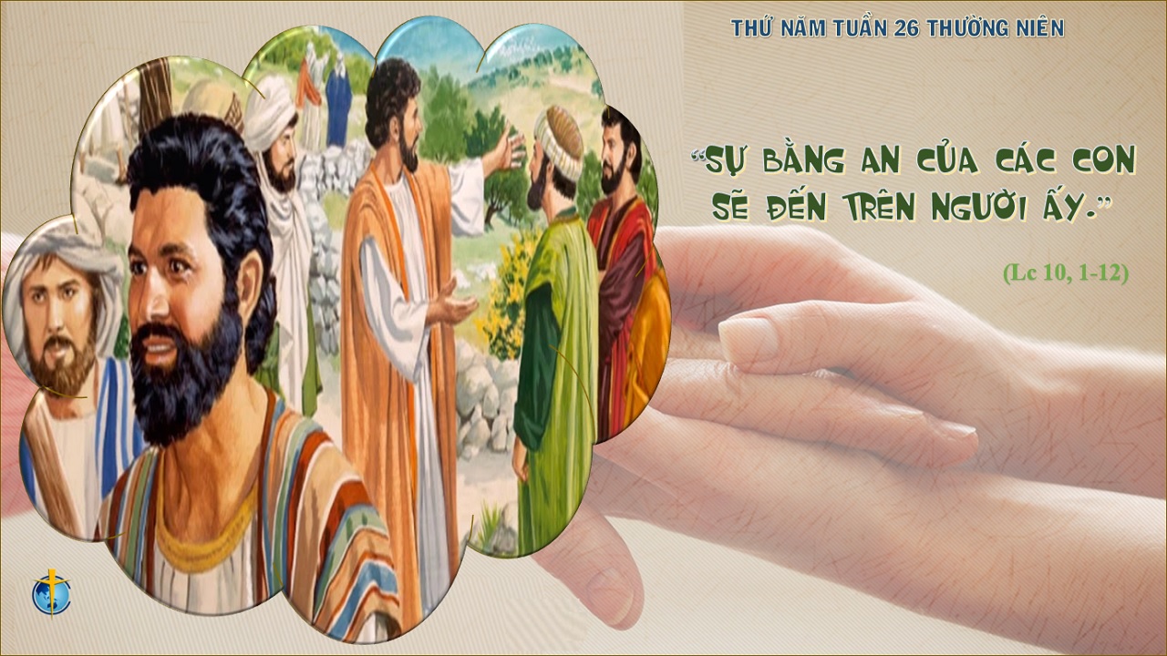 Khi ấy, Chúa chọn thêm bảy mươi hai người nữa và sai các ông cứ từng hai người đi trước Người, đến các thành và các nơi mà chính Người sẽ tới. Người bảo các ông rằng: "Lúa chín đầy đồng mà thợ gặt thì ít; vậy các con hãy xin chủ ruộng sai thợ đến gặt lúa của Người. Các con hãy đi. Này Thầy sai các con như con chiên ở giữa sói rừng. Các con đừng mang theo túi tiền, bao bị, giày dép, và đừng chào hỏi ai dọc đường. Vào nhà nào, trước tiên các con hãy nói: "Bình an cho nhà này". Nếu ở đấy có con cái sự bình an, thì sự bình an của các con sẽ đến trên người ấy. Bằng không, sự bình an lại trở về với các con. Các con ở lại trong nhà đó, ăn uống những thứ họ có, vì thợ đáng được trả công. Các con đừng đi nhà này sang nhà nọ.