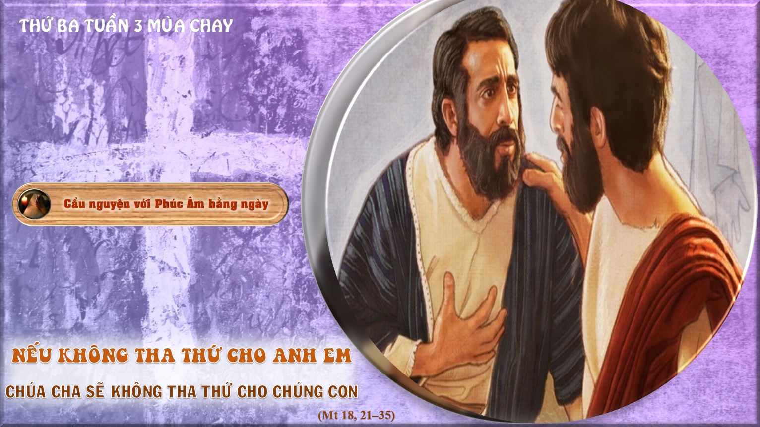 Khi ấy, Phêrô đến thưa cùng Chúa Giêsu rằng: "Lạy Thầy, khi anh em xúc phạm đến con, con phải tha thứ cho họ mấy lần? Có phải đến bảy lần không?" Chúa Giêsu đáp: "Ta không bảo con phải tha đến bảy lần, nhưng đến bảy mươi lần bảy. Về vấn đề này, thì Nước Trời cũng giống như ông vua kia muốn tính sổ với các đầy tớ. Trước hết, người ta dẫn đến vua một người mắc nợ mười ngàn nén bạc. Người này không có gì trả, nên chủ ra lệnh bán y, vợ con và tất cả tài sản của y để trả hết nợ. Người đầy tớ liền sấp mình dưới chân chủ và van lơn rằng: "Xin vui lòng cho tôi khất một kỳ hạn và tôi sẽ trả cho ngài tất cả". Người chủ động lòng thương, trả tự do và tha nợ cho y. Khi ra về, tên đầy tớ gặp một người bạn mắc nợ y một trăm bạc. Y tóm lấy, bóp cổ mà nói rằng: "Hãy trả nợ cho ta". Bấy giờ người bạn sấp mình dưới chân và van lơn rằng: "Xin vui lòng cho tôi khất một kỳ hạn, tôi sẽ trả hết nợ cho anh". Y không nghe, bắt người bạn tống giam vào ngục, cho đến khi trả nợ xong. Các bạn y chứng kiến cảnh tượng đó, rất khổ tâm, họ liền đi thuật với chủ tất cả câu truyện. Bấy giờ chủ đòi y đến và bảo rằng: "Tên đầy tớ độc ác kia, ta đã tha hết nợ cho ngươi, vì ngươi đã van xin ta; còn ngươi, sao ngươi không chịu thương bạn ngươi như ta đã thương ngươi?" Chủ nổi giận, trao y cho lý hình hành hạ, cho đến khi trả hết nợ. Vậy Cha Ta trên trời cũng xử với các con đúng như thế, nếu mỗi người trong các con không hết lòng tha thứ cho anh em mình".