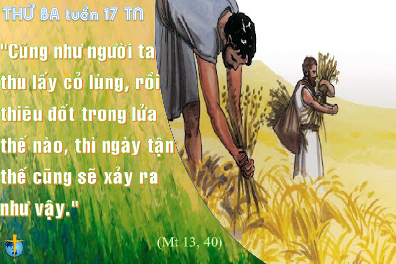 "Cũng như người ta thu lấy cỏ lùng, rồi thiêu đốt trong lửa thế nào, thì ngày tận thế cũng sẽ xảy ra như vậy".