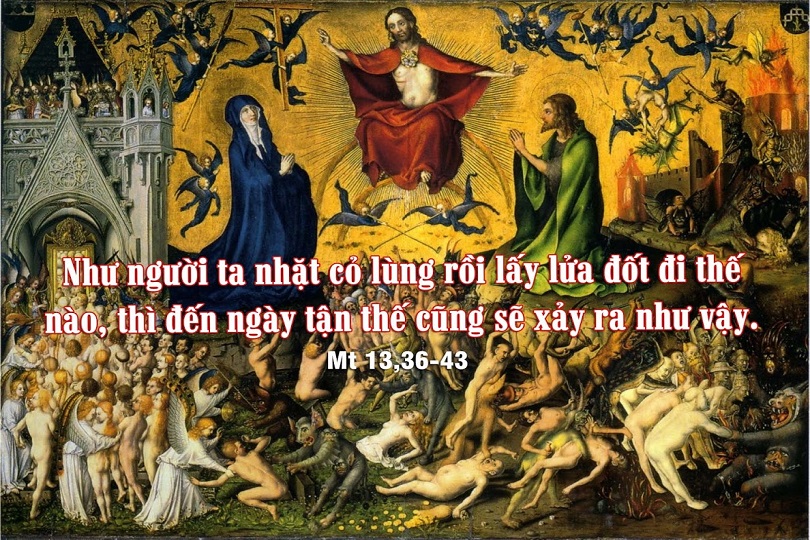 "Cũng như người ta thu lấy cỏ lùng, rồi thiêu đốt trong lửa thế nào, thì ngày tận thế cũng sẽ xảy ra như vậy".