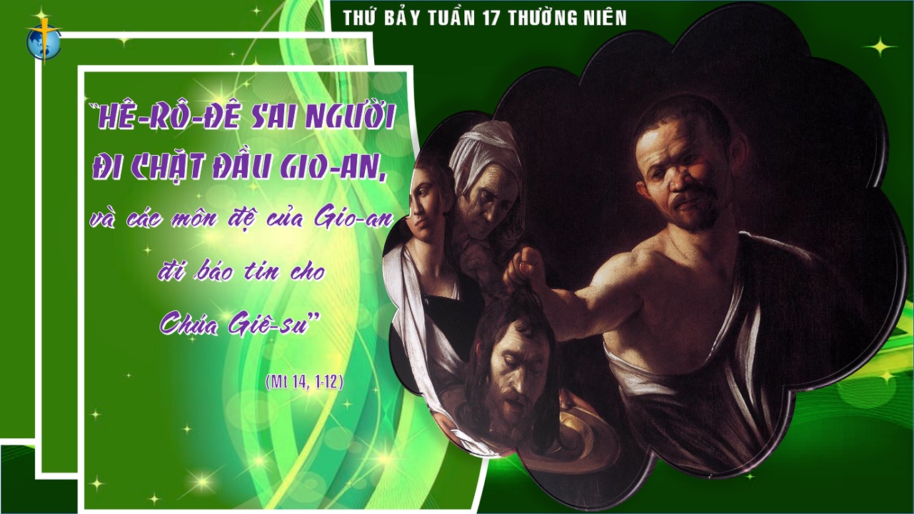 Tin Mừng Chúa Giêsu Kitô theo Thánh Matthêu (Mt 14, 1 – 12)."Hêrôđê sai người đi chặt đầu Gioan, và các môn đệ của Gioan đi báo tin cho Chúa Giêsu".
