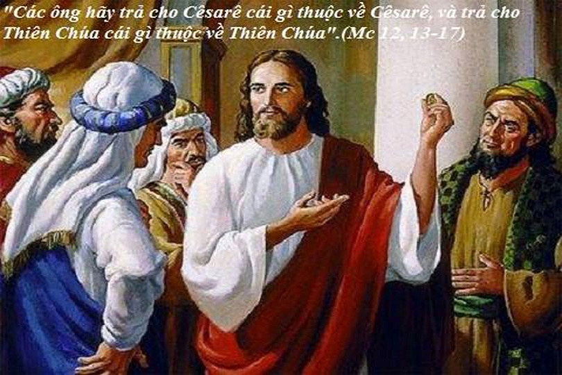"Các ông hãy trả cho Cêsarê cái gì thuộc về Cêsarê, và trả cho Thiên Chúa cái gì thuộc về Thiên Chúa".