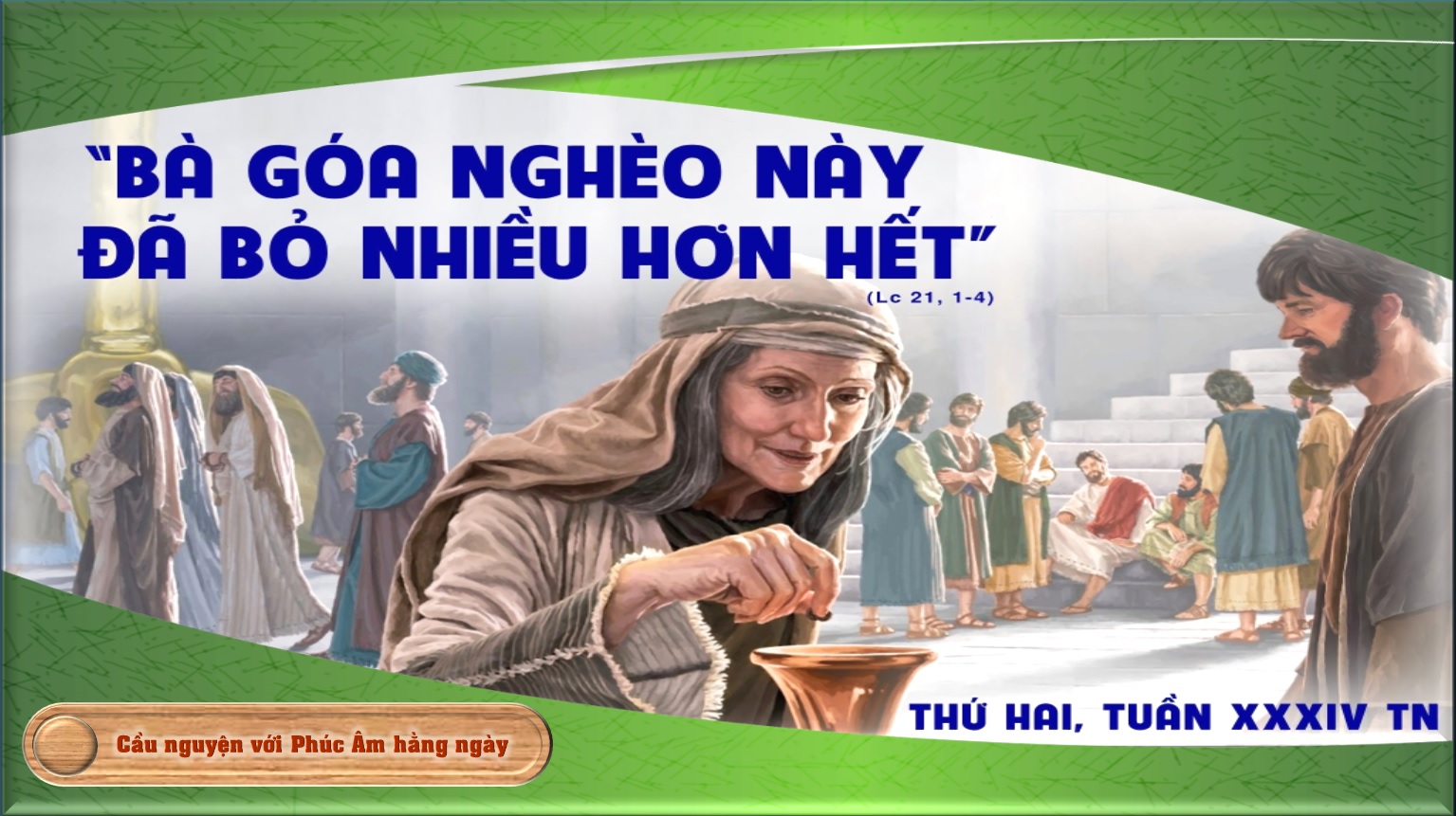 "Người thấy một bà goá nghèo khó bỏ vào đó hai đồng tiền nhỏ".