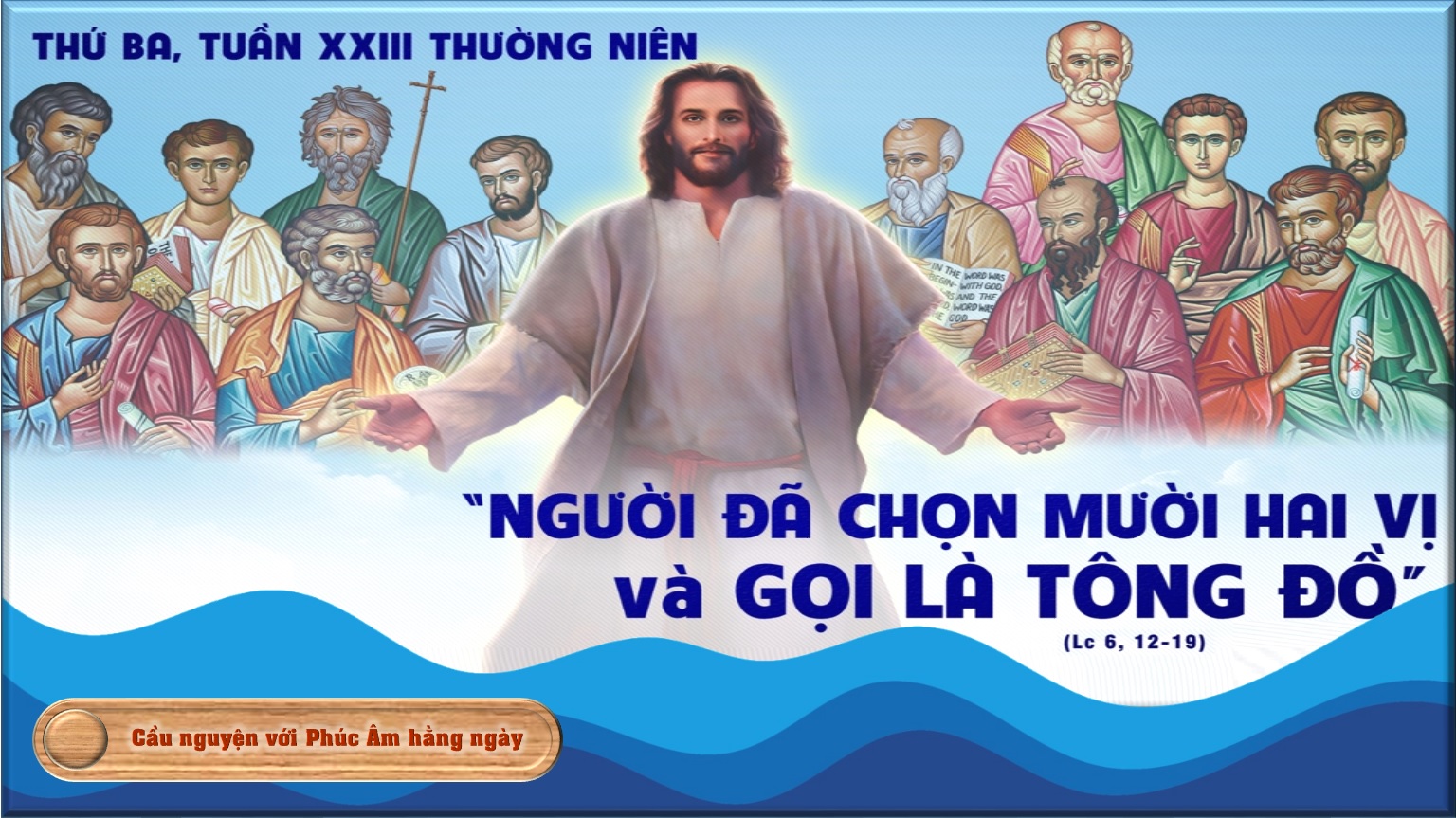 "Suốt đêm, Người cầu nguyện, Người chọn mười hai vị mà Người gọi là Tông đồ".