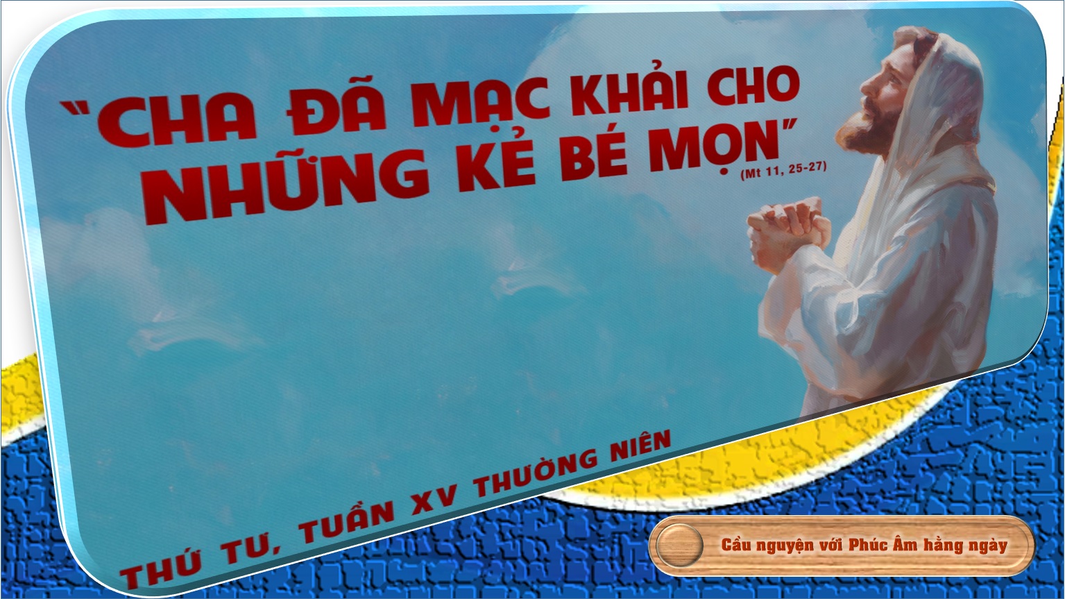 Tin Mừng Chúa Giêsu Kitô theo Thánh Matthêu (Mt 11, 28 – 30).